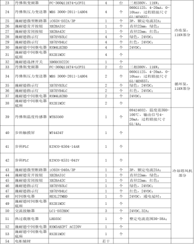 该系统设计之初,均没有考虑冷却泵、冷冻泵、循环泵采用变频控制(如下表1),根据对系统运行工艺的观察,泵总功率110.5KW,电能浪费严重,存在较大的节能空间。